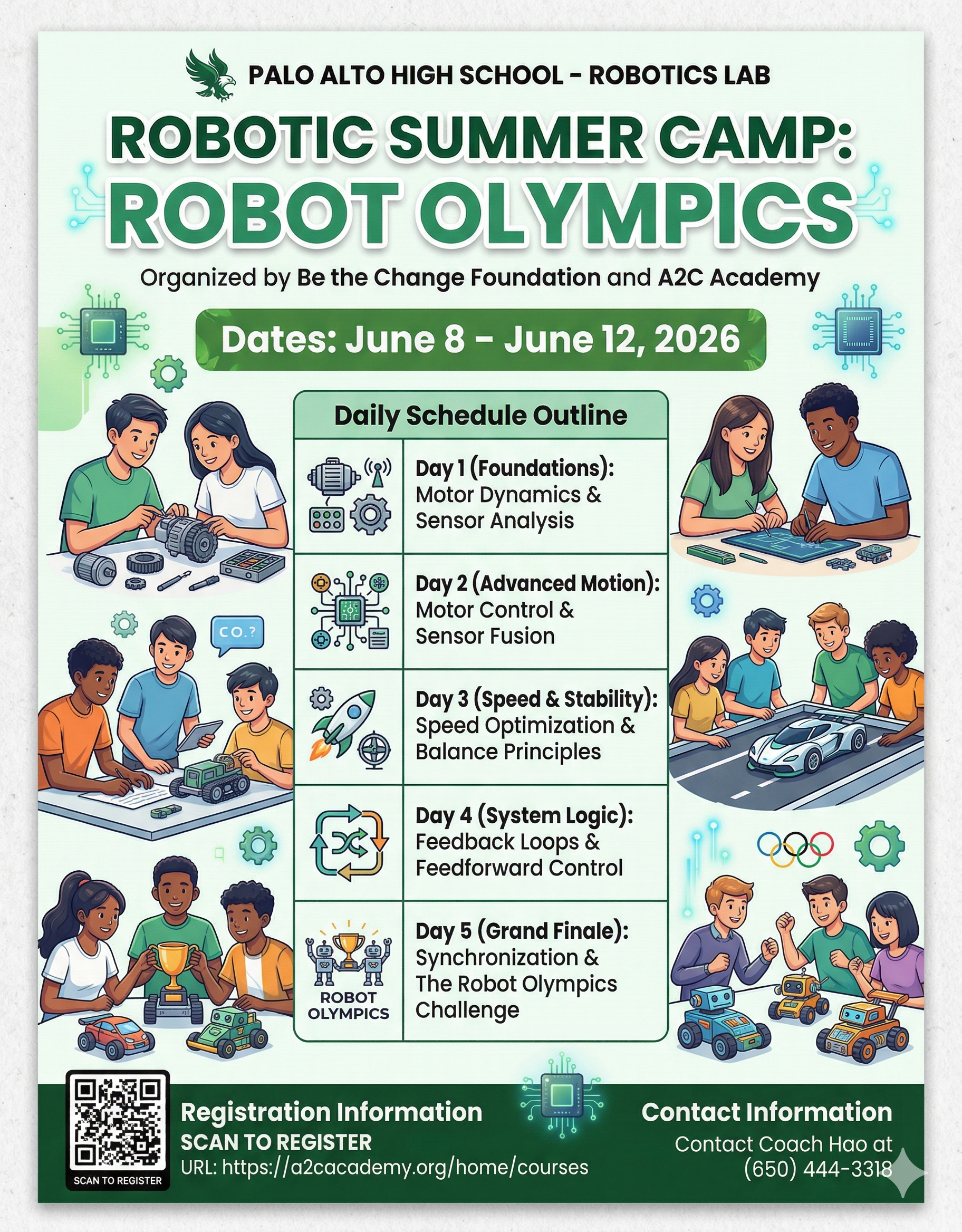 | 09:30 AM | Morning Kickoff | Core concepts: Motor dynamics, sensors, and logic. |